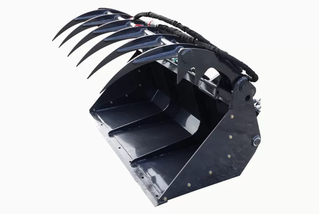 Mounted on S35 skid steer loaders and equipment of similar tonnage, it can perform tasks such as shoveling, transporting, loading, and grabbing loose materials.
