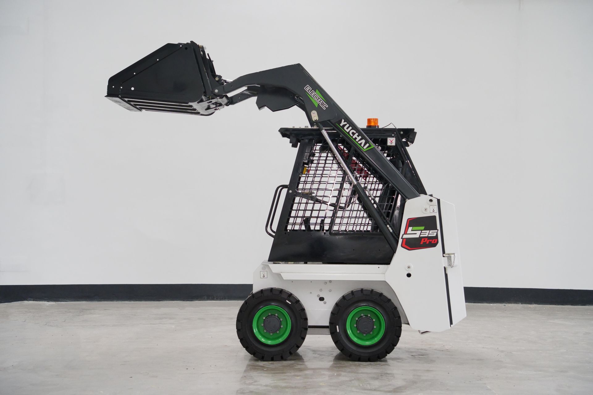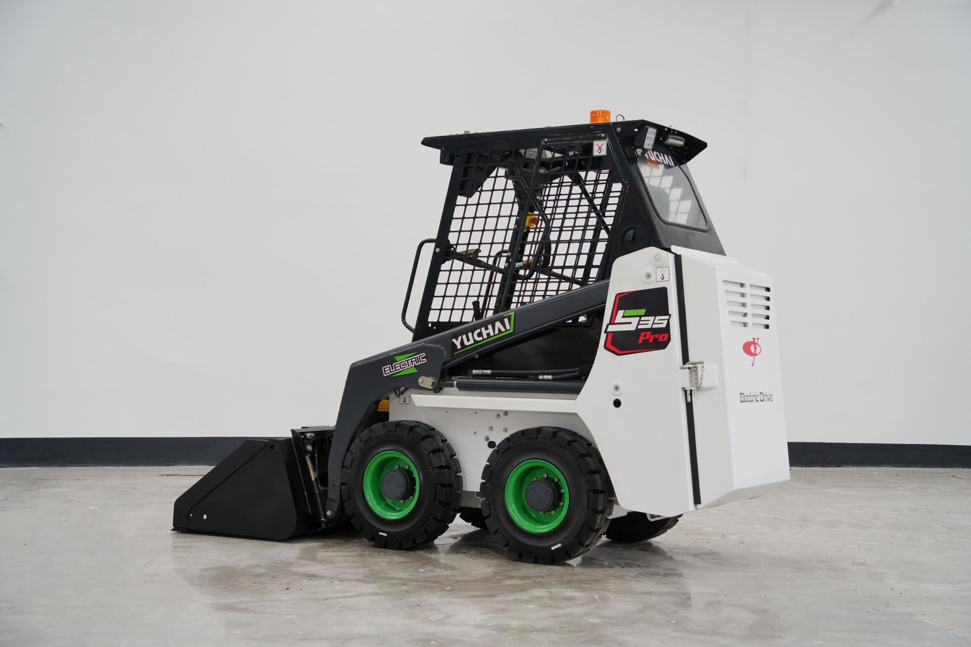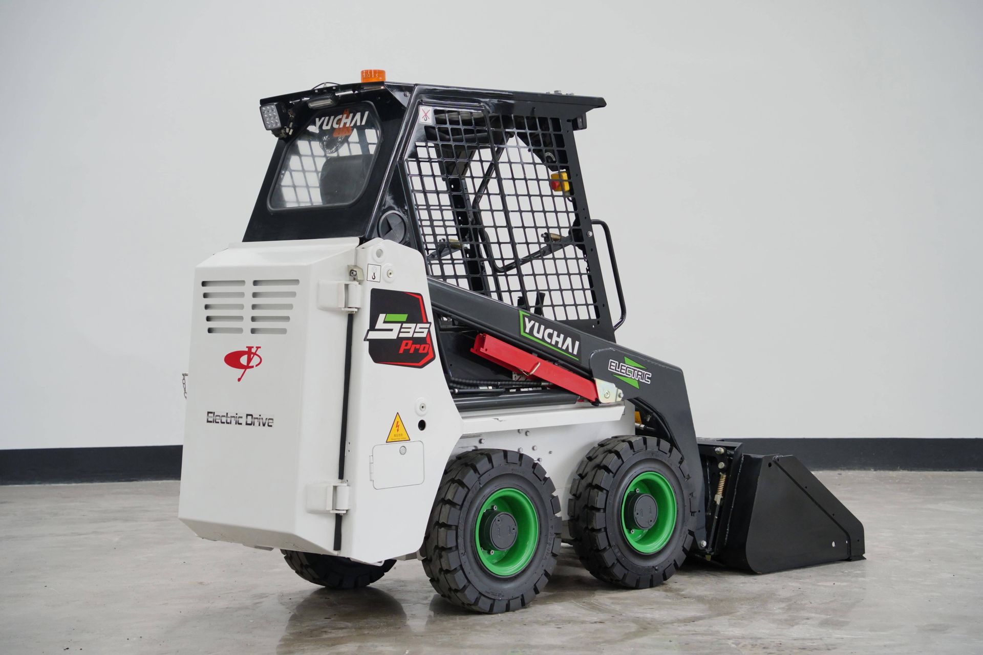 The Yuchai S35Pro electric skid steer loader features with global firstwheel side motor driving and AUTo HOLD technology, ensuring stability, reliability,and safety. lts compact design and excellent maneuverability make it ideal forextremely narrow spaces, easily navigating corridors, aisles, alleys, and low-heightareas. lt can be equipped with various attachments for functions such as loading,sweeping, and crushing.