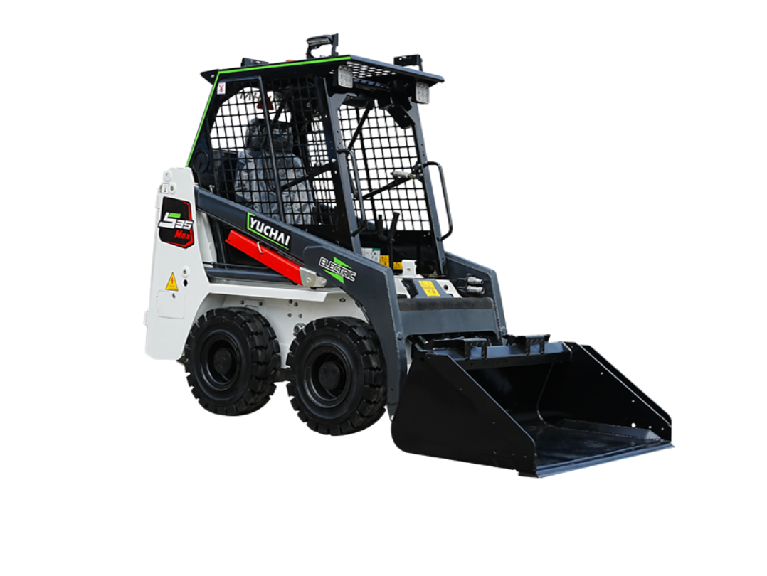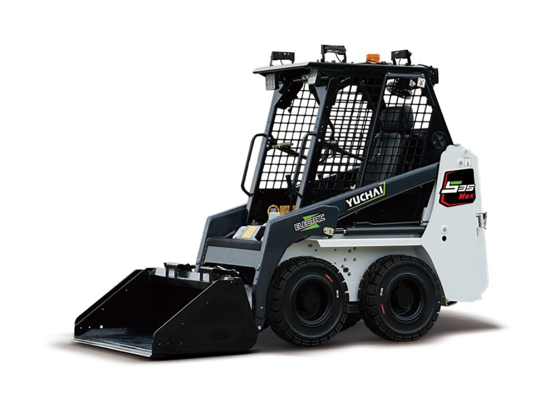 The Yuchai S35Max electric skid steer loader features with global firstwheel side motor driving and AUTo HOLD technology, ensuring stability, reliability,and safety.